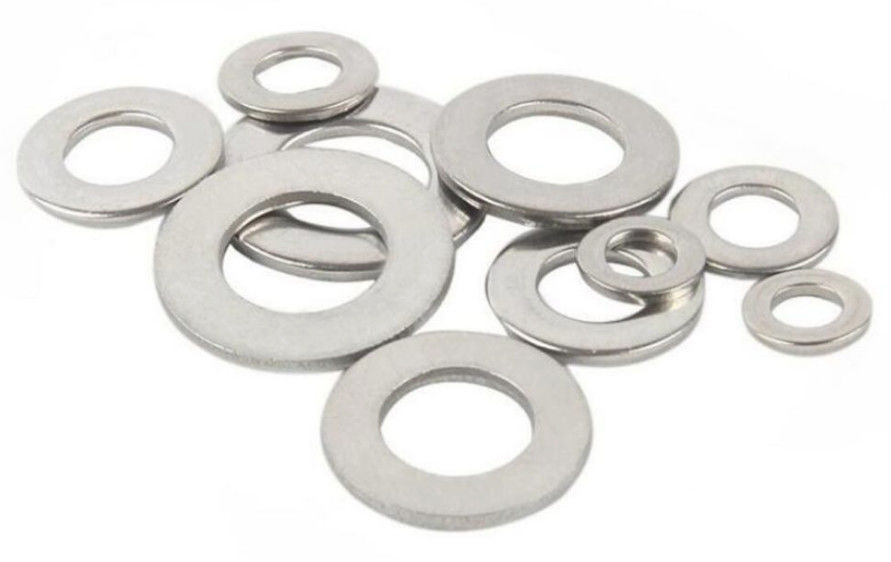 Flat washers are generally used under the head of a bolt or nut to distribute the fastener load over a larger surface area. They also help to prevent corrosion between a steel screw and an aluminum surface.